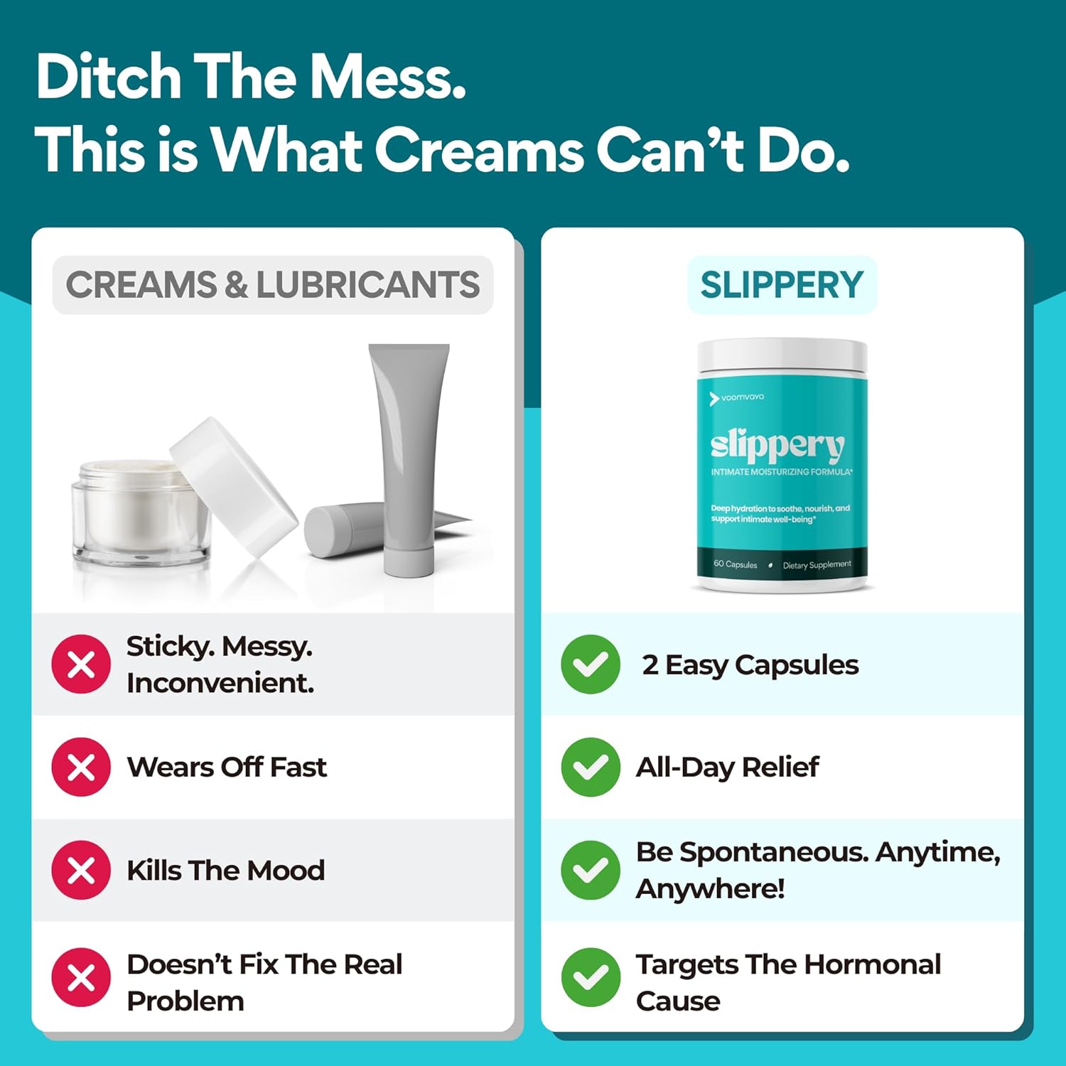 By restoring hormonal balance, Slippery targets the root cause of vaginal dryness during midlife.